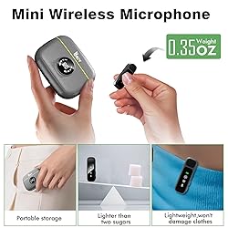 Marvellous Audio: With the upgraded stable omni-reducing AI chip, microphone for iPhone can reduce noise and pick up your voice, providing a clear timbre for every content creator. With its crystal-clear sound reproduction and high-quality recording capabilities, it brings you unmatched recording performance Mini But Powerful: BKIY mini wireless lavalier microphone weighs ONLY 0.35oz like a pod making it a good partner on the go. The small lapel microphone is a portable wireless microphone that can be stored in a camera bag, pocket, backpack, small handbag, etc Wider Compatibility: With a 2 in 1 receiver, this wireless mini microphone supports all type C and lightning port devices, such as iOS (iPhone 15-16/15-16 Pro/Pro Max, etc) and almost all Android Phones(Samsung, Google Pixel, OnePlus) and tablets. (Note: Please turn on the "OTG" function of your Android device before pairing) Furthermore, when recording with a lapel wireless microphone, you don’t need to remove the phone case 30 Hours Battery Life: This lav mic comes with a rechargeable case that delivers 30H total runtime (8H when 2 mics are used alternately). Fast charges in ≤2H and supports charging your phone while recording via the receiver. The LED indicator on the receiver clearly displays the current mode, while the charging case LED screen shows the remaining battery level, helping you manage your work effectively Plug ’n play- No App, No Bluetooth Hassle: The wireless lavalier microphone is ready to use. Enjoy stable transmission without a signal drop, ensuring audio and video sync. When the receiver is connected to a device, the green light will remain on, indicating it’s ready to record. You can review videos without removing the receiver, making playback hassle-free and convenient Switch Between Reverb & Noise Cancellation: Click the M button to turn reverb on/off; double-click to turn the microphone on/off. Long press the power button to turn the microphone on/off; click to turn noise reduction on/off Dual TX Usage: This 2 pack mini microphone for iPhone 15 is able to pick up the voice and enable simultaneous two-person recording for interviews, live streams, and more. You can use one mic for recording and use another as a backup. The lav mic features a mute function that allows you to turn the microphone on and off by double-clicking the power button without restarting it Perfect for All Recording Situations: The mini microphone is perfect for a variety of recording scenarios, including short video shoots, voiceovers, lifestyle vlogs, live streaming or mukbangs, meetings and interviews, as well as online classes and singing sessions. Whether you’re sharing heartfelt stories or having fun with humor, this microphone captures every moment accurately