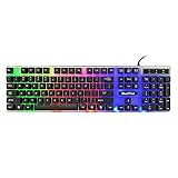 ShanWan Basics USB Wired Keyboard Multiple Color Rainbow LED Backlit, Full-Size, Office Keyboard for Working, Compatible with PC, Laptop - Black