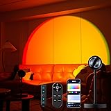 【Remote Control & Button & APP Control】This upgraded sunset lamp projector provides three control methods, you can use the upgraded remote control or convenient buttons to control the color, brightness and mode of the sunset lamp, you can also use APP to enjoy advanced functions such as scene mode, music, microphone and timer, etc. 【Multiple RGBW Colors and Modes】This Upgraded multi-color sunset lamp projector has multiple colors, more vibrant light, offering a wider range of colors and enhanced transparency.and this sunset lamp can produce effects such as color gradients, strobe, color jump and smooth transitions modes.which can be set according to the user's needs through the Remote ,button switch and APP control to meet the needs of users in various scenes. 【Full Angle Adjustable lamp】Flexible Hose Design, 360 degree twisting hose,thickened and widened base, This sunset lamp solves the problem of rotation lag and has greater freedom of use. You will not affected by the angle when using the projection lamp. 【HD Crystal Lens】 - The Sunset Projection Lamp has an HD Thickened crystal lens. strong light transmission and refraction wider light-emitting surface, farther distance, and larger projection range. Use high-quality LED, energy-saving and environmentally friendly,not easy to get hot, long-lasting and durable,make more beautiful night lights effect. 【Widely Used】 - The soft sunset light is great for Night Lighting /Photography/Vlog/Selfie/ Party/ Valentine's Day/Anniversary celebrations. Suitable for Living rooms, bedrooms, and garden decorating, creating a different sunset projector light atmosphere, let you enjoy your leisure time and your family.