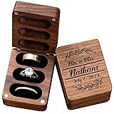 Munidow Wedding Ring Box Personalized 3 slots Boxes for Ceremony, Engagement Custom Wooden Mini Rectangle Holder Elegant and Retro Ring Holder Box/Organizer with Name & Date
