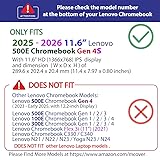 ☞⚠❤️🛑⭕️‼️ NOTE: Before placing order, PLEASE make sure to verify your laptop model number as this case is MODEL specific and NOT interchangeable. ‼️⭕️🛑❤️⚠☜ ❌‼️🛑⭕️ NOT Compatible for other 11.6-inch or 12-inch or 13-inch or 15-inch Lenovo Chromebook laptops. NOT compatible for ANY other Lenovo laptops as well. ❌‼️🛑⭕️ Made of high-quality translucent polycarbonate material which is shatter-proof and will protect your 2025 or later 11.6" Lenovo 500e Chromebook Gen 4s 2-in-1 Laptop against scratches and accidental damages Designed to perfectly fit the 2025 or later 11.6" Lenovo 500e Chromebook Gen 4s 2-in-1 Laptop with dimension of 289.6 x 202.4 x 20.4 mm (11.4 x 7.97 x 0.80 inches) 2-piece light-weight ( 7.0 oz or 198 g ) shell easily snaps on and off.