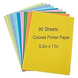 Colored Copy Paper 8.5 x 11 Printer Paper, 90 Sheets Colorful Paper Letter Size, Brightness Rainbow Lightweight Color Construction Paper for Arts Crafts DIY Origami School Office Supplies