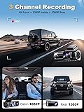 Nanoby 4K 3 Channel Dash Cam Front and Rear Inside, Built-in 5.8GHz WiFi GPS, 64GB Card Included, 4K+1080P+1080P Dash Camera for Cars, 3.18'' IPS Screen Dashcam with G-Sensor, 24H Parking Monitor