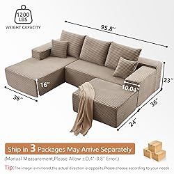Versatile Modular Sofa Design: Revamp your living space with the flexibility of our modular sofa. This U-shaped sectional comes in 3 separate pieces, allowing you to create endless configurations that fit your room size and style preferences. The removable ottoman adds extra functionality, easily transforming into additional seating or serving as a footrest. Perfect for apartments, living rooms, or any area that needs a stylish yet functional upgrade, this sofa adapts to your lifestyle needs Comfy Chaise Lounge: Indulge in pure comfort with chaise lounge, crafted for relaxation and ultimate lounging. Made with high-resilience foam and coil spring reinforcement, this chaise offers a plush, cloud-like seating experience that’s perfect for stretching out, reading, or simply unwinding. Its spacious design makes it the ideal spot to escape and relax, and it seamlessly pairs with the modular sofa to create a cozy corner in your home Luxurious Corduroy Upholstery: Sink into luxury with our high-quality corduroy fabric, designed to be soft, breathable, and durable. This skin-friendly material provides a comfortable seating experience while adding a sophisticated touch to your décor. The sofa comes with 3 large cushions, enhancing both comfort and longevity. It's a perfect combination of modern style and functional comfort for your home No Assembly Required: Enjoy a stress-free setup with a sofa that comes fully assembled! No tools, no hassle—simply unbox, fluff the cushions, and within 72 hours, you’ll have a perfectly shaped chenille sofa ready to enjoy, providing comfort and style without any complicated assembly Compact & Space-Saving Design: Ideal for any room, from small apartments to spacious living areas, this modular sofa is designed to maximize space while providing plenty of seating. Its compact design allows for easy navigation through narrow hallways and doorways, while still offering ample room for relaxation. Note: The sectional is shipped in 2 separate packages, which may arrive at different times