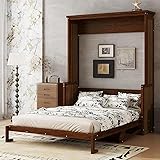 MERITLINE Queen Murphy Bed with Desk, Solid Wood Vertical Murphy Wall Bed Cabinet with Storage Shelves Space-Saving Hidden Bedframe (Walnut,Queen)