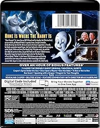 - "Ghost therapist" Dr. James Harvey (Bill Pullman) and his daughter Kat (Christina Ricci) arrive at drafty, old Whipstaff Manor. Its greedy owner, Carrigan Crittenden (Cathy Moriarty), has hired Dr. Harvey to exorcise the house's apparitions: a friendly but lonely young ghost named Casper, who's just looking for a friend, and his outrageous uncles Stretch, Stinkie and Fatso (The Ghostly Trio). If the plan works, she and Dibs (Eric Idle), her partner-in-slime, can get their hands on the manor's fabled treasure. Meanwhile, Casper has found a kindred spirit in Kat, but The Ghostly Trio will not tolerate "fleshies" in their house. With hilarious antics and dazzling special effects from many of the creators of Who Framed Roger Rabbit and Jurassic Park, Casper is a mile-a-minute adventure comedy for the whole family. Bonus Content: Includes 4K UHD, Blu-ray and a digital copy of Casper (Subject to expiration. Go to NBCUCodes.com for details.)Features Dolby Vision and HDR10 for Brighter, Deeper, More Lifelike ColorRevealing CasperDeleted SceneOriginal Theatrical ShortsFeature Commentary with Director Brad Silberling"Penguin for Your Thoughts" Cartoon ClassicDeleted ScenesFeature Commentary with Director Brian Silberling