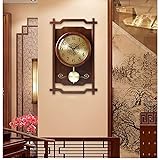 WANGKENSU Wall Clock New Chinese Style Wall Clock with Pendulum Wall Clock Wood Living Room Decoration Wall Clock Home Bedroom Silent Clock 16 Inches Decor Clock (Color : B) (B)