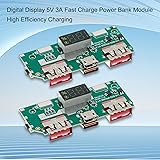 - Features: This 5V 3A digital display fast charging treasure module adopts advanced charging technology,which can quickly charging device and shorten your waiting time. With two USB port,you can charging two devices at the same time,need to wait in turn The charging treasure module is equipped with a digital display screen,which can clearly display the remaining power and charging,which is convenient for you to understand the charging situation in real time. Beautiful arrangement of components. Stable performances,a variety of fast charging protocols. Specifications: Component:ABS Size:Approx.56.5x23.3mm/2.22x0.91inch Note: 1.Please allow 1-2cm errors due to manual measurement,making sure that you not mind before order. 2.Due to the differences between different monitors,the picture may not reflect the actual of the item. Package includes: 2Pcs Charging Module