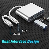 2-in-1 USB-C + Micro USB to SD & TF Memory Card Reader Adapter for iPad Camera, Dual Connector Card Reader with Windows/Mac OS/Linux,for Type C/Android Phones,Samsung/iPad/Huawei/Pixel/LG-Plug&Play