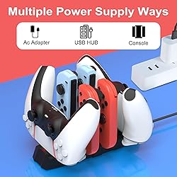 - IPYGAM Controller Charger for Nintendo Switch&PS5, Controller Charging Dock for Nintendo Joncon/Pro Controller/PS 5 Controller, Switch Controller Charging Station with LED Indicator and Charger Cable for JoyCons, 6 in 1 Nintendo Gamepad Charging Dock