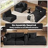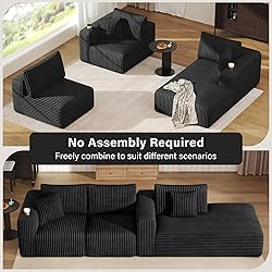 【Multiple combinations to meet Different Needs】Each independent module is movable and can be placed in three separate positions. Families can can sit in separate seats to enjoy intimate conversations around the coffee table. Also, combine modules to create an L-shaped sectional sofa, or effortlessly convert the sofa into a full-size guest bed. 【High-quality Memory Foam】The sofa base is filled with 100% high-density foam. This high-quality foam can effectively absorb and evenly distribute weight. It won't collapse even after prolonged sitting and will return to its original shape in a short time, ensuring lasting comfort and durability. 【Luxurious Corduroy Upholstery】The sofa is wrapped in Soft-touch corduroy fabric, which provides you with a soft and relaxing feeling. More importantly, you no longer need to worry about your furry friends scratching the surface of the sofa. Moreover, the cover of the pillow backrest is detachable, and you can clean it directly when it gets dirty. 【Enlarged Size】The armrest is designed to be 10.8 inches wide, making it convenient for you to place fruit plates or books. Moreover, a cup holder is attached to the armrest. To sit more relaxed, we have deepened the sitting depth. It is 28.7 inches without the backrest, and there are two small throw pillows that can be attached to the waist, making it more comfortable when lying down. 【Assembly-Free Convenience】Unlike conventional sofas requiring complex hardware installation, you can arrange the various parts together according to the shape you need and use it after opening the package. Note: Allow 72 hours post-unpacking for complete dimensional recovery from compressed shipping state.