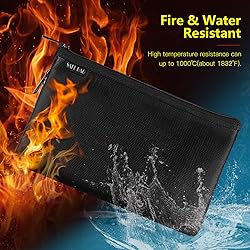 - [PREMIUM FIREPROOF PROTECTION] Crafted with silicone coated fiberglass on the outside thermal insulated cotton in the middle and flame retardant cloth on the inside this fireproof money bag offers exceptional protection against high temperatures up to 1000℃ (1832℉). Its water design ensures your important documents cash jewelry and passports stay safe from both fire and water damage. [SPACIOUS AND EXPANDABLE DESIGN] Featuring a one pocket design with large storage space this document bag can securely hold A5 files money cards passports licenses letters precious photos keys and jewelry. The innovative double zippers on the sides allow you to expand the storage capacity making it versatile for all your valuables. [SECURE ZIPPER CLOSURE] Equipped with a durable metal zipper this fireproof bag ensures your items remain securely inside. The smooth and reliable zipper closure provides easy access while preventing your valuables from falling out giving you peace of mind during travel or daily use. [LIGHTWEIGHT AND PORTABLE] Designed for convenience this fireproof document bag is soft comfortable and easily foldable. Its lightweight construction makes it ideal for carrying in your briefcase backpack or luggage ensuring your important items are always protected wherever you go. [VERSATILE FOR EVERYDAY USE] for home office and travel this fireproof pouch is a must have for office workers and families. Whether you're on a business trip or vacation this bag keeps your documents and valuables safe and organized making it an essential accessory for anyone who values security and convenience. Spec: Features: 【Small Fireproof Document Bag】:Made of silicone coated fiberglass outside, thermal insulated cotton middle, flame retardant cloth inside, high temperature resistance can up to 1000℃(about 1832℉). Document bag is not easy to get wet, effectively protect your important items, have a good water performance. 【Larger