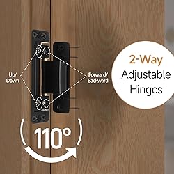 DIY-Friendly Ultra-Thin Design — Our upgraded hidden door hinges require only a shallow 1/2" slot, making them perfect for DIY concealed door projects. Fits doors over 1" thick and frames at least 1-7/16" thick. No special tools—just basic woodworking skills. Invisible & Modern Look — These ultra-thin concealed door hinges stay hidden when closed, giving your home a clean, modern style without visible hardware. Perfect for creating invisible doors, secret door hinges for hidden rooms, or sleek interior upgrades. Adjustable for Perfect Fit — Features two-way adjustment: ±3mm up/down and ±1mm forward/backward. This ensures precise door alignment, smooth opening, and long-term stability for any concealed or secret door hinge installation. Strong & Wide Opening — Built for durability, each pair of invisible hinges supports up to 133 lbs and offers a wide 110° opening angle. Ideal for solid wood hidden doors, upgraded interior designs, or custom DIY projects. Smooth & Silent Operation — These hidden hinges have soft padding inside, so doors open and close smoothly without squeaks or messy oil. Enjoy smooth, effortless movement for your secret or invisible doors every time.