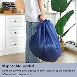 SIZE: This 54" x 108" Red Plastic tablecloth will cover any table up to 8 feet. ECONOMICAL CHOICE: This table cloth eliminates the need for cleaning and storage, saving you both time and money. Enjoy the convenience of a disposable tablecloth that combines affordability with practicality. HIGH OPACITY: covers any table with minimal transparency. Great plastic tablecloth for parties, weddings, holiday party, thanksgiving dinner, bbq, and any other color themed event. DISPOSABLE: Disposable works! When the party is over, cleanup is easy - just roll up the disposable tablecloth and dispose of it. PREMIUM QUALITY: Our heavy duty plastic table covers are made heavy plastic and sure to hold up well.