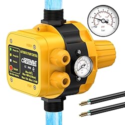 Protection for Water Pump Life Longevity - Built-in dry run protection automatically shuts off the pump during water shortages to prevent motor burnout, while a wide 60°C operating temperature range ensures reliability in extreme conditions. Constructed from corrosion-resistant, rust-proof plastic, the automatic water pump switch could withstand harsh environments, including gardens, greenhouses, and humid areas. Intelligent Automatic Control for Hassle-Free Operation - Transform standard water pump into a smart system with advanced electronic pressure sensing and intelligent sensor and controller. The smart water pump pressure switch checks water pressure and levels to auto-start/stop the pump, eliminating manual adjustments. Prevents on/off cycling and pressure fluctuations, ensuring smooth, efficient operation for consistent water supply. Clear & Accurate Pressure Indications: Easy-to-read dial ensures precise pressure monitoring at a glance. 0–10 bar / 0–145 psi, suitable for most household and industrial water systems. Easy to check water leakage or pump clogging. Installation Simplicity with Real-time Status Monitoring- No complex wiring required – The electronic well pump switch comes with two pre-connected power cables for easy hookups to pumps and power sources. Bright LED indicators (power, operation, failure) provide instant visual display, letting you monitor performance at a glance. Perfect for DIY users and professionals seeking quick, hassle-free installation. Versatile Applications for Every Watering Need - Perfect for home water systems, garden irrigation, tank filling, and drinking water purification. Works with clarified water pumps to maintain pressure in greenhouses, yards, and multi-story homes. A compact, all-in-one solution that combines smart control, safety, and adaptability for endless water management possibilities.