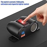 Novel Design: This product adopts tent design, only need to be fixed on the mounting surface with screws, no need to drill big holes for embedding, easy to install and neat appearance. The product is made of advanced flame retardant and environmentally friendly materials, which can be used for a long time. PD30W and QC18W Ports: The 12V USB Charger has 2 USB ports: PD3.0 30W + QC 3.0 18W, with a maximum total output power of 48W, compatible with all PD and QC ports. 120W Cigarette Lighter Socket: The cigarette lighter socket has a total power of up to 120W, which is enough to meet the needs of daily use, and can be perfectly matched with compatible devices such as dash cam, GPS, vacuum cleaner, air purifier, radar detector and so on. Button Switch and Blue Voltmeter: Push button switches control the USB ports, voltmeter and the socket to conserve power and prevent excessive battery drain. The voltmeter monitors the voltage in the car in real time, making your trip safer. Easy to Install: Just use screws to fix the product on the mounting surface, then connect the red wire to the positive pole and the black wire to the negative pole, the installation can be completed within 10 minutes. After installation, the volume is small, neat and beautiful. Wide Use: The 12V USB socket works perfectly with any DC 12V/24V in-vehicle devices: motorcycles, cars, boats, ATVs, trucks, RVs, buses and so on. Ideal for charging cell phones, GPS, digital cameras, PDAs and other USB accessories.