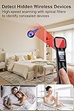 【6-in-1 Hidden Camera Detectors】Easily uncover hidden cameras, GPS trackers, and listening devices! This advanced spy finder scans for wireless signals, infrared light, and magnetic fields to pinpoint threats. Whether at home, in hotels, or on the go, the hotel room security devices safeguards your privacy and professional life from unauthorized surveillance. 【Simple, Fast, & Effective】Powered by upgraded tech, just turn it on, sweep the area, and let audible alerts notify you of threats. No tech skills needed—perfect for travelers, frequent hotel guests, or anyone needing quick privacy protection. Enhanced accuracy and extended range make it highly effective at spotting hidden bugs, with a clear 0.96-inch screen for real-time viewing 【Lightweight & Travel-Ready】Designed for convenience, this compact detector fully charges in 1 hour and lasts for hours of use. Detect: Covert cameras (e.g., in smoke detectors), Wireless/Magnetic listening devices, Vehicle GPS trackers with strong magnetism and so on. Ideal for hotel stays, Airbnb rentals, car inspections, and business trips. 【User-Friendly Operation】Switch effortlessly between silent and beep modes, adjustable detection modes and sensitivity to fit any environment.Trusted by experts & customers, many travelers use our hidden bug and camera detector as hotel safety devices to protect their privacy. Recommended to find bedrooms, bathrooms, flower pots, etc. hidden devices. 【Reliable Support】Stop risking your security. Shield yourself from spy cameras in hotels, changing rooms, workplaces, cars, dorms, and every private space. If you choose our anti-spy device and encounter any functional or quality issues during use, please contact us. Our 24/7 professional team is always ready to assist you.