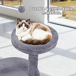 Ideal Size & Sleek Design: With a height of 24" and a 15.8" base, its compact, neutral design fits seamlessly into any room decor, from living rooms to home offices Sturdy & Stable Construction: Features a weighted MDF base and a top platform for security, paired with a 100% natural sisal-wrapped post for durable scratching that protects your floors Encourages Play & Protects Furniture: The integrated plush toy and superior sisal surface naturally attract cats to scratch and play here, helping to save your valuable furniture from damage Elevated Perch for Observation: The sturdy top platform offers a secure vantage point for your cat to jump, survey their territory, or relax, satisfying their natural instincts Quick, Tool-Free Assembly: Easily set up in minutes for instant fun. All necessary tools and clear instructions are included for a hassle-free setup