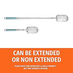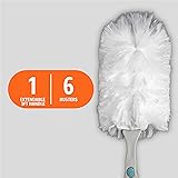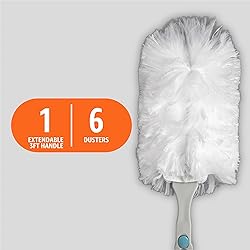 360° ALL-AROUND CLEANING: Heavy duty duster kit traps dust and allergens from all angles for thorough cleaning EXTENDABLE HANDLE: Adjustable handle extends to reach high surfaces like ceiling fans, light fixtures, and tall furniture with ease MICROFIBER TECHNOLOGY: Advanced microfiber plumes pick up and trap 2X more dust and pet hair allergens than traditional feather dusters COMPLETE KIT: Includes 1 extendable handle and 6 heavy duty plumes for long-lasting cleaning performance MULTI-SURFACE VERSATILITY: Safe for use on delicate surfaces including electronics, furniture, blinds, and decorative items GREAT FOR PET HAIR: Specially designed microfiber effectively captures and holds pet hair from various surfaces