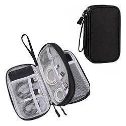 Quality Material: This electronic organizer travel case made of high-quality durable waterproof oxford with soft sponge inside to securely hold gadgets and provide quick access. A perfect case for electronics accessories Double Layers Design: Features 2 compartments for storing electronic gadgets, such as power banks, batteries, hard drives, cables, external drives, flash drives, chargers, USB cables, memory cards, smartphones, and other accessories Practical and Convenient: This travel cable organizer Includes a comfortable hand strap for carrying. Durable smooth zipper secures devices and allows quick access to items Lightweight Travel Accessories: Size: 7.4"L x 4.3"W x 2.0"H; Weight: 0.26 lb. Easily fits into backpacks or handbags. Suitable for family use and daily organization Multi-Use Applications: An essential travel organizer for weekend getaways, business trips, vacations, etc. Suitable for personal use and family needs
