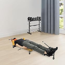 Inline Back Stretch Bench: In addition to relieving low back pain and cervical traction, it can also be used for weight loss and body sculpting, you can perform exercises such as sit-ups and assisted abdominal curls. Strong Load-bearing Capacity: The sturdy construction and quality materials allow it to hold up to 330.7 pounds, so you can use it to use it with confidence. Thoughtful Design: Our product uses a hand crank to operate, more labor-saving. The comfortable U-shaped feet clamp allows feet to be free of burden and fit more comfortably to the ankle. Adjustable Design: Its length can be adjusted to meet the usage needs of family members of different heights. Easy to Move: Featuring a mobile roller design, even girls can easily push it in the corner or behind the door and does not take up too much space.