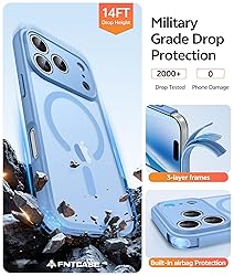 Strong Magnetic Charging: Fit for Magnetic chargers and other Wireless chargers. This iPhone 17 Pro Max Case has built-in 38 super N52 magnets. Its magnetic attraction reaches 2400 gf, which is almost 7X stronger than ordinary, therefore it won't fall off no matter how it shakes when you are charging. Aligns perfectly with wireless power bank, wallets, car mounts and wireless charging stand Camera Protection: Unique meticulously designed integrated lens cover protection. It prevents your iPhone 17 Pro Max camera from any dust, shatter, or scratch. And the same camera cover color match with phone case, which looks more uniform Tempered Glass Screen Protector: iPhone 17 Pro Max Phone case with 1X screen protector, it can preserves the original touch sensitivity and HD clarity while providing exceptional protection against scratches and drops 14FT Military Grade Drop Protection: Our Phone Case iPhone 17 Pro Max backplane is made with rigid polycarbonate and flexible shockproof TPU bumpers around the edge and features 4 built-in corner Airbags to absorb impact, which can prevent your Phone from accidental drops, bumps, and scratches Matte Translucent Back: The Case for iPhone 17 Pro Max uses high quality matte TPU and PC translucent material, refined and elegant beauty without covering the iPhone logo. The frosted surface provides a comfortable hand feel, and the Nano antioxidant layer effectively resists stains, sweat and scratches