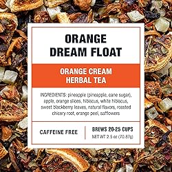 - Transport yourself to nostalgic summer days with every sip of Orange Dream Float! This caffeine free herbal tea blends juicy orange slices, sweet pineapple, and smooth creaminess for a refreshing, uplifting flavor that reminds you of your favorite childhood treat. But it’s not just about taste—packed with hibiscus, apple, and roasted chicory root, this tea supports your immunity and provides natural antioxidants to keep you feeling energized and vibrant. Enjoy our caffeine free tea anytime, whether hot or cold, as a morning pick-me-up or a soothing evening drink. Made with gluten-free, plant-based, and vegan ingredients, it’s a guilt-free indulgence that fits every lifestyle. Plus, with a resealable, reusable bulk pouch, tin, and pouch, you can enjoy this delightful organic loose leaf tea at home, work, or on the go—whenever you need a burst of flavor and a nostalgic escape!