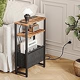 IRCPEN Narrow Side Table with Charging Station Slim End Table Sofa with Magazine Rack, Bedside Table for Small Spaces, 3 Tier Nightstand for Living Room Couch, Bedroom Rustic Brown LET503RE