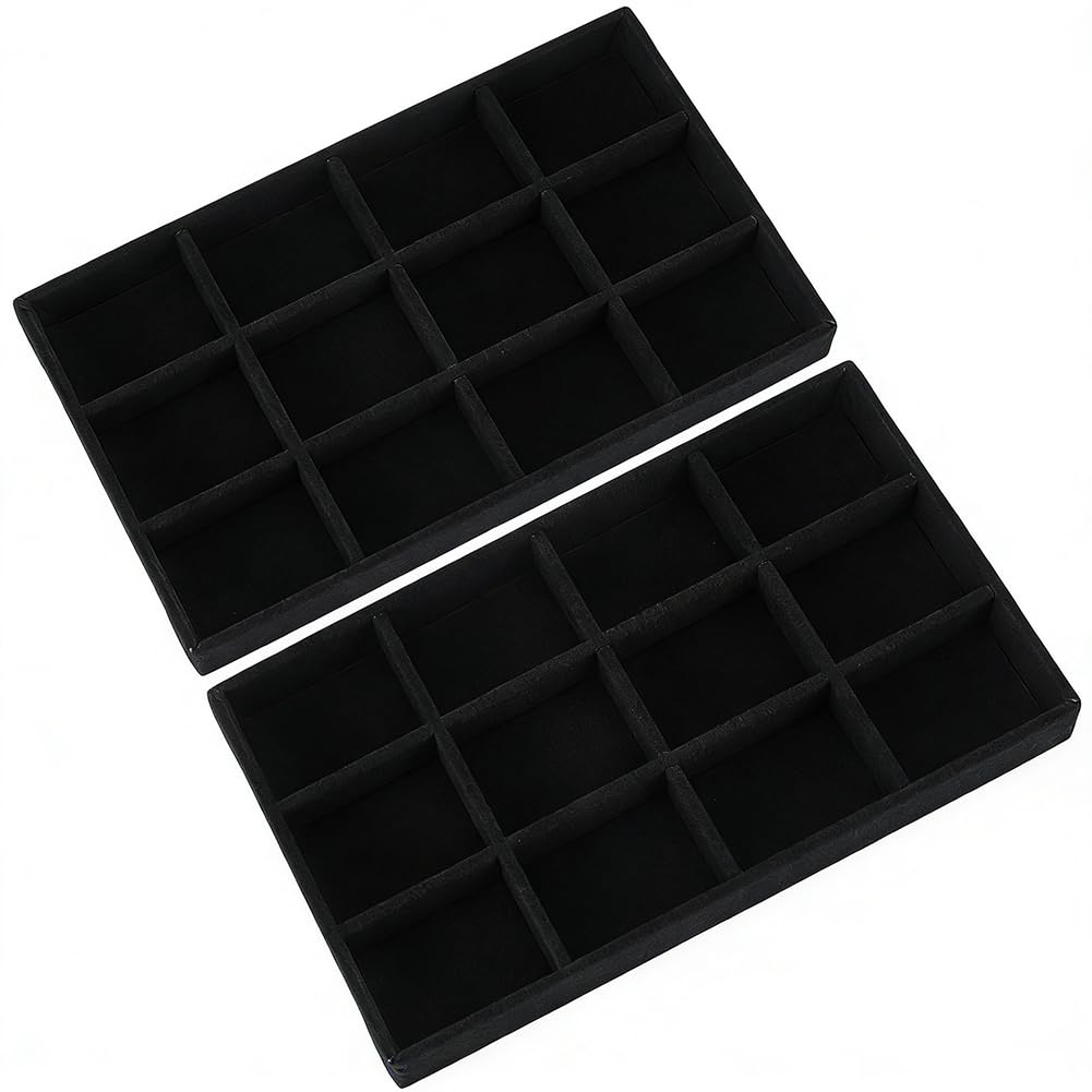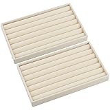 Compact Friendly: The slim, lightweight design fits effortlessly into drawers, countertops ensuring your jewelry stays knotted free and well protected whether at home Sturdy Construction: Made with a durable wood base wrapped in high quality velvet, these trays offer reliable protection for your jewelry, preventing scratches and keeping your valuables neatly organized and easily accessible Size and Content: The package includes 2 rectangular trays about 124 x 210 x 23mm(4.88 x 8.27 x 0.91in), offering ample storage space for personal s or commercial displays, making them ideal for boutique showcases, vanity tables Reliable Material: Each jewelry tray is luxuriously covered with soft antique white velvet, providing a smooth and scratch resistant surface to safely store rings, earrings, bracelets, and other delicate accessories while maintaining a sophisticated aesthetic Versatile Display: Perfect for both home organization and retail presentation, these trays allow you to neatly arrange jewelry for quick selection or elegant store displays, enhancing visual appeal while keeping pieces secure