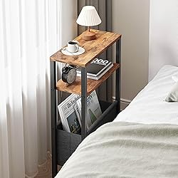 - Narrow Side Table, Slim End Table with Magazine Rack, Bedside Table for Small Spaces, 3 Tier Sofa Couch Table Nightstand for Living Room, Bedroom Rustic Brown LET503R
