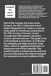 - Conquer the ASE L2: Electronic Diesel Engine Diagnostics for Trucks is part of the Conquer the Exam series—concise, focused guides for professionals preparing for vocational and certification exams. This book offers a streamlined review of key diesel diagnostic topics, including OBD systems, emissions components, powertrain control, and scan tool usage. Rather than cover every possible detail, this guide helps you focus on the core concepts tested on the ASE L2 exam. It is designed to supplement more comprehensive resources, hands-on experience, and manufacturer-specific training—not to replace them. You’ll review sensor operations, fault code logic, regeneration cycles, NOx controls, and more—all explained in practical terms. The book also includes chapters on professional communication, ethical judgment, and workplace conduct—skills essential for real-world success. Study strategies and common exam pitfalls are covered at the end, along with a final checklist to assess your readiness. Whether you're a working technician renewing certification or taking the test for the first time, this guide provides structure, focus, and confidence. This unofficial guide is independently authored and not endorsed by the National Institute for Automotive Service Excellence (ASE).