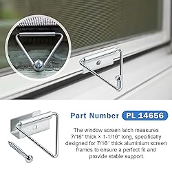 • Part Number: PL 14656 Size: 7/16'' × 1-1/16'' Material: Stamped aluminium Easy Installation: Slide into the bottom of the aluminium screen frame and hook onto the ball-head screws on the window frame to secure. Installation can be completed with just a Phillips screwdriver, making it simple and easy to operate. Compatibility: Precisely compatible with 7/16'' thick aluminium screen frames to ensure stable and reliable installation. Note: Please refer to the product line diagram before purchasing to verify that the dimensions meet your actual requirements. Compatible with various window types: Suitable for single-pane windows, double-pane windows, or sliding windows, as long as the screen frame thickness meets the requirements.
