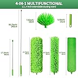 7-Ppiece Set: The high duster kit includes a spider web duster x 1; ultra-fine fiber duster x 1; stainless steel telescopic pole x 1; gap cleaning head x 1; chenille cleaning brush x 1; replacement short handle x 1; storage net bag x 1. The feather duster set is perfect for cleaning furniture, ceilings, ceiling fans, stairs, window sills, and spider webs.dusters for cleaning Extended and Thickened Telescopic Pole: With the addition of the feather duster's length, the feather duster equipped with the telescopic pole can extend up to 110 inches in height. The thicker rod provides more stability when cleaning high places, reducing wobbling. The duster pole head is equipped with a soft cover, so there's no need to worry about scratching the walls. Bendable Duster Head: The ultra-fine fiber long duster features a built-in bendable metal rod. By folding it into the appropriate shape, it can reach and clean areas that are out of sight, such as the top of a desk or the back of a ceiling fan. The ultra-fine fiber duster has a slight positive charge, which allows it to easily attract and hold hair and dust. Gap Cleaning Brush: The set includes a gap cleaning head with a 0.5mm thickness, designed to clean gaps, under beds, refrigerators, washing machines, and other hard-to-reach crevices and corners, solving the hassle of cleaning gaps in your home. Comes With a Small Handle: The replacement short handle allows for more convenient cleaning of homes, cars, sofas, etc., with multifunctional use, all in one set.house cleaning supplies,cobweb duster outdoor Portable Storage Bag: After cleaning is completed, the tools can be directly placed in the bag, saving space.ceiling fan cleaner duster。spider web brush with pole,fan cleaner for ceiling fan blades extendable duster Washable and Easy to Store: The cleaning brush of the ceiling fan duster can be detached and hand-washed or machine-washed, and can be reused after drying. The handle of the ceiling fan duster has a hole at the end, which allows it to be hung or stood in the corners of the storage room and garage for storage, or it can be directly placed into the storage net bag that is included.
