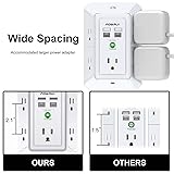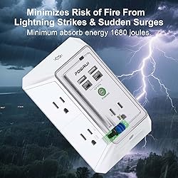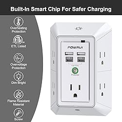 【Multi-function USB Wall Outlet】: 4 USB Charging Ports(2 USB-C Charging Ports), 3-sided Power Strip, with 5 Adapter Spaced Outlets, and LED night light around the edges. Taking the place of a standard socket, but instead offering you many more plugs. Can be used in any room or public areas indoor. Save space with unique 3D design. NOTE: The UCB-C port doesn't support any other devices which need 14~22V charging voltage. 【Wide Space Outlets】: 5 AC outlets built-in 1680 Joules surge protector with 2.1 inches long space in between, larger than standard 1.5-inch socket. Larger spacing makes it easier to use for all kinds of equipment. 2 USB-A Charging Ports & 2 USB-C Charging Port can charge your smart device quickly.Ideal room/home/bedroom decor. 【Smart Night Light】: With Dusk-To-Dawn Sensor, automatically turns on only when ambient lighting becomes insufficient. With touch sensor, three levels of adjustable brightness let you choose the right amount of light for your own needs. You could also choose to turn on/off the nightlight manually.The night light is soft, warm and comfortable, great for bedroom, bathroom, nursery, hallway, kitchen and more. 【Reliable Surge Protector Circuit】: POWRUI 2 level complementary Surge Protector Circuit which composed of TVS, MOV (metal oxide varistor), with minimum 1680J energy absorbing capacity, could protect your devices much more quickly and reliably than other brand's 1 level MOV(metal oxide varistor) Surge Protection Circuits. 【Our After Sale Service】: ETL Certified, Our friendly and reliable customer service will respond to you within 24 hours. You can purchase with confidence, with our 30-day return and 12-month warranty.