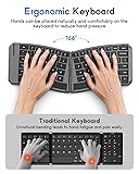 MoKo Ergonomic Foldable Keyboard, Split Portable Folding Bluetooth Keyboard for Business Travel, Ultra Slim Rechargeable Wireless Keyboards for iOS/Android/Windows Tablet PC Smartphone
