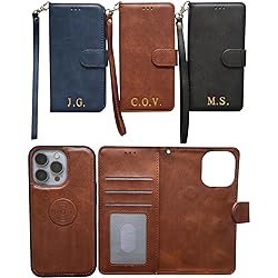 2-in-1 Custom Flip Wallet Case for iPhone – Personalized Initials or Name | Compatible with iPhone 17, 16, 15, 14, 13, 12, 11, XR, XS, Pro, Max, Plus | Foldable Magnetic Case Cover with Card Slots