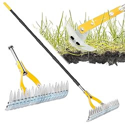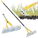 - Blumetrec Thatch Rake for Lawn with 74inch Handle, 15 inch Dethatcher Rake for Grass to Cleaning Dead Grass, Efficient Steel Metal Rake for Dethatching, Heavy Duty Thatching Rakes for Garden, Yard