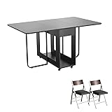 VASTATIO Folding Table and Chair Set, Dining Table with Extra Large Storage Space and 2 Drawers Matched with Padded Steel Frame Folding Chairs, Space-Saving Dining Table and 2 Chairs (Black)