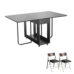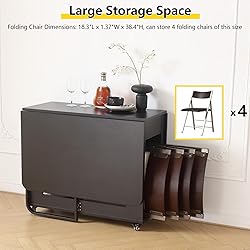 【Folding Dining Table Set】The folding chairs set of 2 and the folding dining table with large storage space can store four chairs. This brillant combination is a great space saver. After having meal, the chair can be folder up into the storage space under the dining table, which could hold 4 chairs at the same time. Go with a durable option that’ll keep up with all of your space saving plans. Folding kitchen table comes in a lasting material and a stylish and inviting vibe. 【Qualified material&Stylish Design】High-quality wood, high-end configuration, and meticulous workmanship. The texture is durable and sturdy enough to last for years. The foldable dining table with chairs' edges are polished by hand, round and smooth, accidentally bumping into general handles and sharp corners is no longer a matter. 【35.4inch Extra Wide Tble Top】28% Wider Than Standard Folding Tables Fits 4 Adults Comfortably (22" Elbow Room per Person) vs 27.5" Crowded Competitors,the extra wide tabletop design makes dining and working more comfortable Space-Saving Folding Design: 55 inches → 3 seconds slims down to 15.7 inches, Expandable folding structure, multi-use form conversion, suitable for apartments, small homes, dining tables, desks, entryway table use. 【Ergonomic folding chair】 Folding chairs with cushion feature 15° angled seat & lumbar-support backrest. Open to full size (18.3"x32") in 3 seconds – faster than competitors. Lab-tested posture support reduces back pain by 40% during 6-hour use,Dimensions (18.3"x32") optimize space as dining table chairs. 【Waterproof&Installation instruction】Just a few drops of water on the extendable dining room table and event chairs could remove the dirt and stain easily. The event chairs are ready to use. The foldable table comes with step-by-step instructions. User-friendly instruction allows you to complete the assembling procedures in a 1-2 hours.