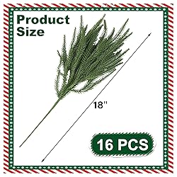 16 Pack Realistic Norfolk Pine Greenery: Real-touch technology replicates the look, feel, and flexibility of fresh pine stems—ideal for Christmas floral arrangements, holiday planters, or as Christmas tree filler branches in your festive decor. With a bulk set of 16 stems, you have ample holiday garland material and evergreen sprigs to decorate mantels, tabletops, doorways, and entryways. Versatile Holiday Decor: Each 18” evergreen stem bends effortlessly for use in DIY wreaths, garlands, mantel greenery, or as tabletop Christmas decor and vase filler. Their classic look complements both modern and traditional aesthetics - suitable for winter decor or modern Christmas decorations. Adjustable & Reusable Design: Built with bendable greenery stems that hold your custom shape without breakage or needle drop. Fluff and reshape these faux pine branches to craft full wreaths, centerpieces, or sparse wintery accents year after year. Premium Faux Greenery: Crafted from high-quality PVC materials with true-to-life color gradients, these artificial pine stems won’t wilt or shed. Add natural charm to vintage Xmas swags, holiday garlands, and rustic Christmas home decor indoors. Complete Your Holiday Theme: Mix and match with cedar sprigs, eucalyptus garland, pine cones, ornaments, or neutral baubles for a cohesive look. Elevate your Christmas home décor indoor styling—ideal for living rooms, entryways, offices, table centerpieces or farmhouse Christmas decorations.