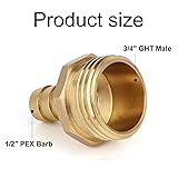 BOXOB 2pcs Solid Brass 1/2" PEX Barb to 3/4" GHT Male Garden Hose Connector, Heavy Duty Leak-Proof Fitting for Repair & Splicing