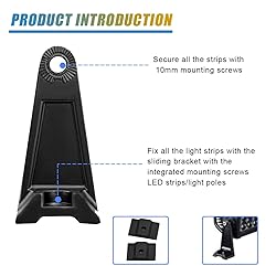 【Quality Material】: The car slide mounting bracket is carefully crafted from aluminum alloy, which is corrosion-resistant, rust-proof, sturdy, shock-proof, and has a long service life. Its surface is covered with a black coating, which can easily resist the attack of bad weather. In addition, the bracket can also raise the height of the light bar, effectively avoiding damage to the car paint. 【Adjustable Bracket】: The car LED light bar mounting bracket supports 360-degree rotation adjustment, allowing you to easily find the perfect viewing angle. It supports sliding and positioning at any position along the back of the light strip, allowing for control of the beam's illumination direction and illuminating every corner of the vehicle. 【Wide Application】: This car mounting bracket is applicable to parts such as the grille guard tube, bumper, and roof luggage rack of automobiles. It is compatible with 18 W, 36 W, 60 W, 72 W, 108 W, 120 W, 180 W, and 240 W straight or curved LED light strips ranging from 7 inches to 52 inches. 【Easy to Install】: This car light strip mounting bracket is easy and convenient to install without complicated steps. You just need to fix the mounting bracket on the LED strip and then tighten the screws to fix the installation. You can adjust the viewing angle of the LED strip according to your actual needs. 【Package Included】: You will receive a pair of side mounting brackets and a pair of rubber pads, including nuts, washers, bolts, hex wrenches, and other necessary accessories. Its accessories are complete and it also has a feature that promotes air circulation to help dissipate its own heat.