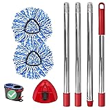 Spin Mop Replacement Set, Includes 2 Mop Head Replacement, 1 Mop Handle (30-58in Adjustable 4-Section Pole), 1 Spin Base