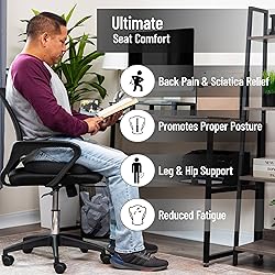 Foam Air-Cloud Cushioning: High-density memory foam supports hips and tailbone for lasting comfort in office car or wheelchair Posture-Boosting Design: Contoured shape with cut-out encourages spinal alignment and reduces pressure on lower back Pain Relief Support: Alleviates discomfort from sciatica tailbone hip pain or herniated discs with even weight distribution Easy to Clean and Carry: Mesh cover is removable and machine washable built-in handle and non-slip base offer convenience Supportive and Compact Size: Measures 18"L x 13.5"W x 2.75"H fits most chairs car seats and wheelchairs