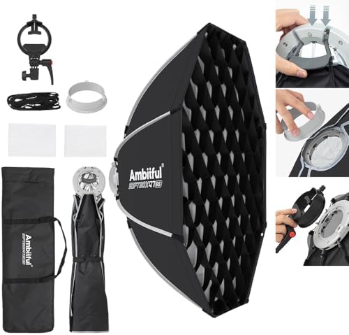 AMBITFUL 25.6" / 65cm Octagonal Softbox, Quick Release with Bowens Mount & Speedlite Bracket for COB Lights, Flash for CB60/CB100, SL60/SL100, MS300/SK400, V1/V1PRO/V100, AD200PRO/II (25.6")