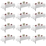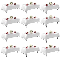 FINDYOU 12 Pack White Table Cloth Rectangle Table 60 x 102 Inch Tablecloths for 6 Foot Rectangle Tables. Stain and Winkle Resistant Polyester Washable White Cloths for Parties