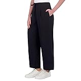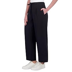 Pull-On Style Elastic Waistband with Drawstring Ankle Length Pleated Detail at Front | Tie Belt Tacked at Back Ladies' Ankle Pant