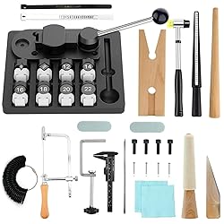 【PROFESSIONAL DIY RING BENDER MACHINE】Ring Bending Tool Set is designed for professionals and beginners, the set includes: a nylon mold, rubber jewelry hammer, metal ring bar measuring tool, ring mandrel, polishing rod and cloth, a 27pieces round model and ring size gauge can be for ring bending tool is designed for soft precious metals, save your heart and effort, make jewelry DIY craft easier. 【VERSATILE JEWELRY MAKING MACHINE】The Ring Sizing Kitis the most commonly used of the jewelry-making tools. Our ring bending tool easily helps bend earrings, rings, and other metal parts into the shape you want, which is popular among professionals and beginners alike. As our ring benders are very easy to use. 【ASSORTED NYLON STENCIL SET】Nylon Stencils help you bend without damaging fragile materials. Ring mandrel setter for ring repair, shaping, polishing, and grinding. The rubber hammer will not leave marks on your jewelry, nor will it damage your jewelry, better help you repair your rings and jewelry. 【PREMIUM BENDING SOLID STEEL PIPE BENDERS】Our Ring Benders are made of solid steel, then hardened to 45-50 HRC for superior performance and fine workmanship. Each steel post and mold is black oxidized for lifetime corrosion resistance. The base and handle are designed for high torque, allowing the user to apply less resistance when bending metal. 【ADVICE FOR USING THE RING BENDER】Please use materials no thicker than 3mm to achieve optimal results. Its specialized design ensures you get the best results every time, whether you're crafting rings, earrings, or other metal components.