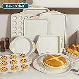 BakerChef 10-Piece Nonstick Baking Pans Set, Stackable Non-Toxic Bakeware Sets with Silicone Handle, Oven Pan Set for Cooking, Includes Easy Release Cookie Sheet, Roasting Pan, Muffin Tin (Cream)