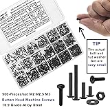 HanTof 900PCS Button Head Hex Socket Cap Screws Assortment Kit, Small M2 M2.5 M3 Bolts and Nuts Washers Set, Allen Head Machine Screws, 10.9 Grade Alloy Steel Black, Fully Threaded, Come with Hex Key